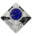 - Decorated with a convex cobalt glass insert