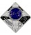 - Decorated with a convex cobalt glass insert