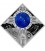 - Decorated with a convex cobalt glass insert